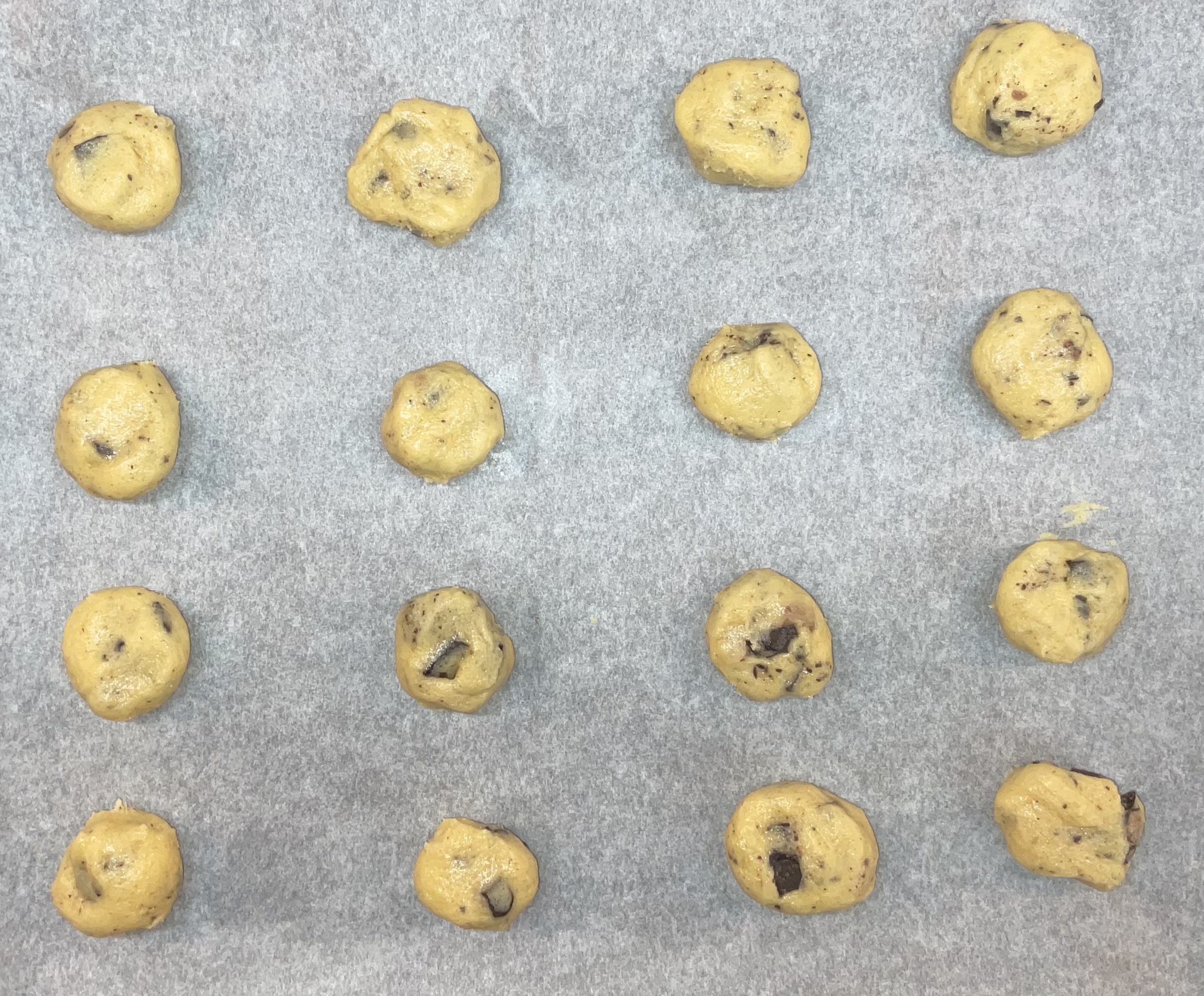 Aus dem Teig Bälle formen und diese auf Backpapier verteilen