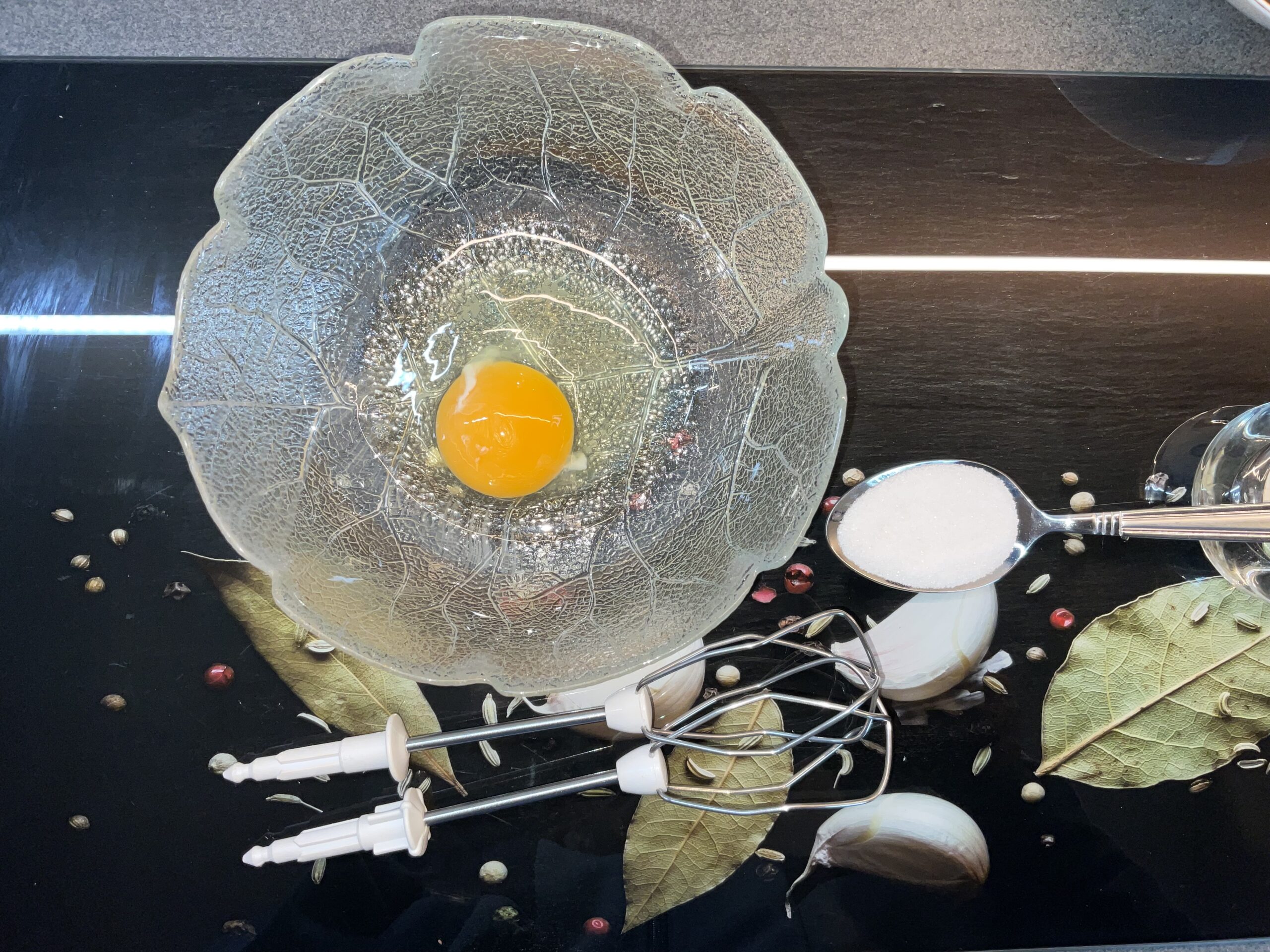 Das Ei mit dem Vanillezucker schaumig schlagen