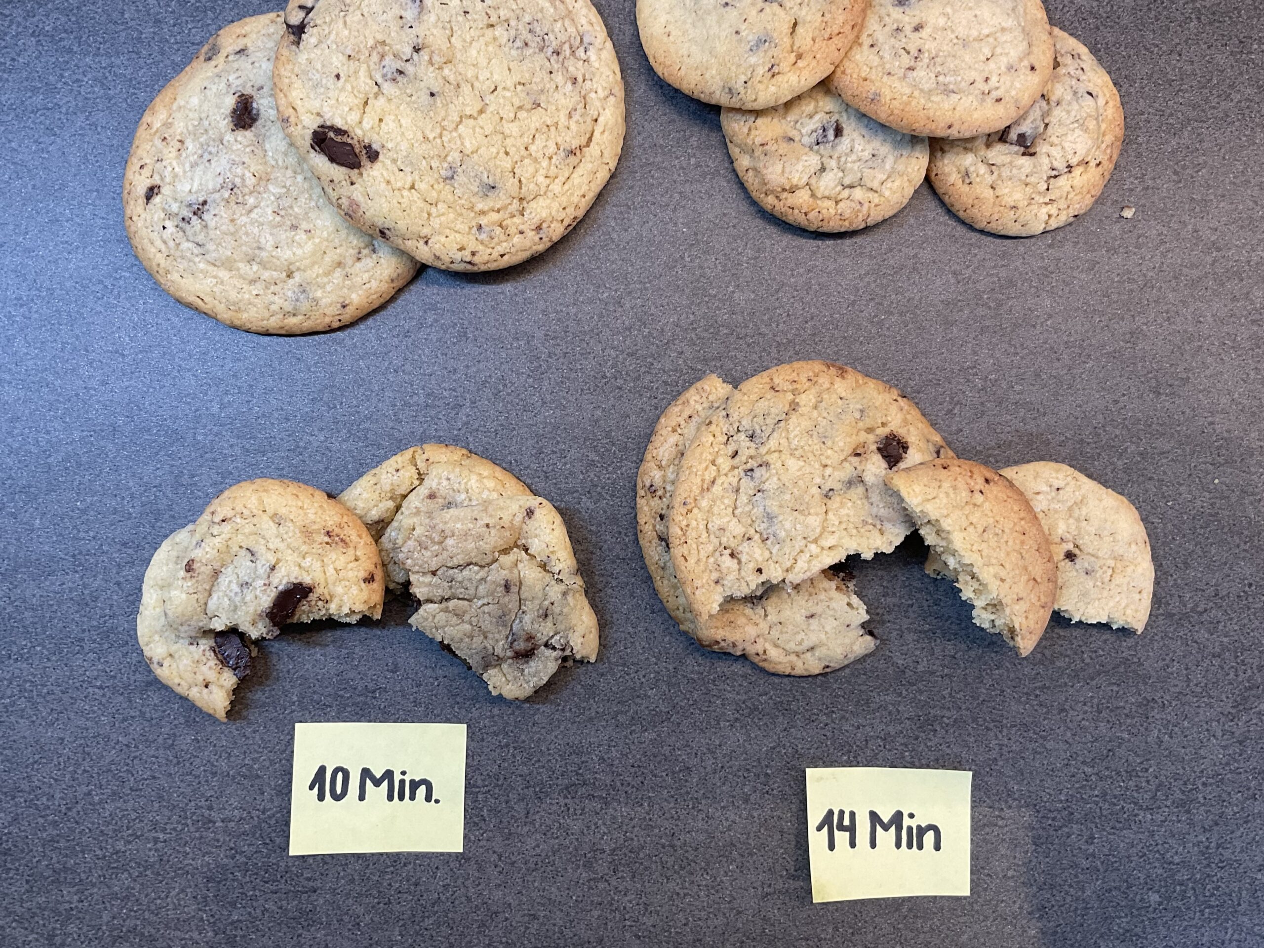 Nach 10 Minuten sind die Cookies im Kern noch weich (oder wenn der Rand ganz leicht dunkler ist)