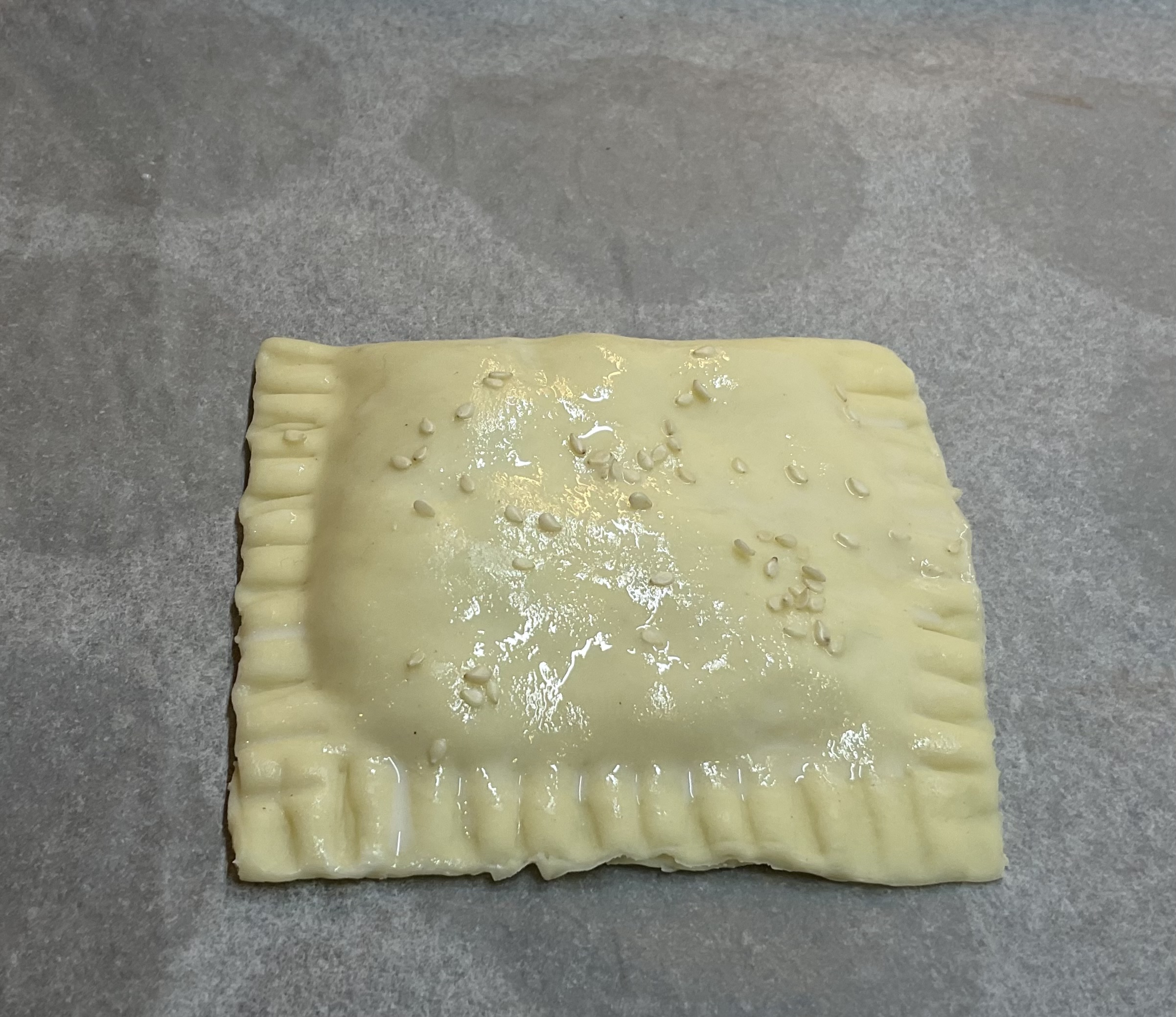 Optional: Teigtaschen mit Milch bestreichen und mit Sesamkernen bestreuen