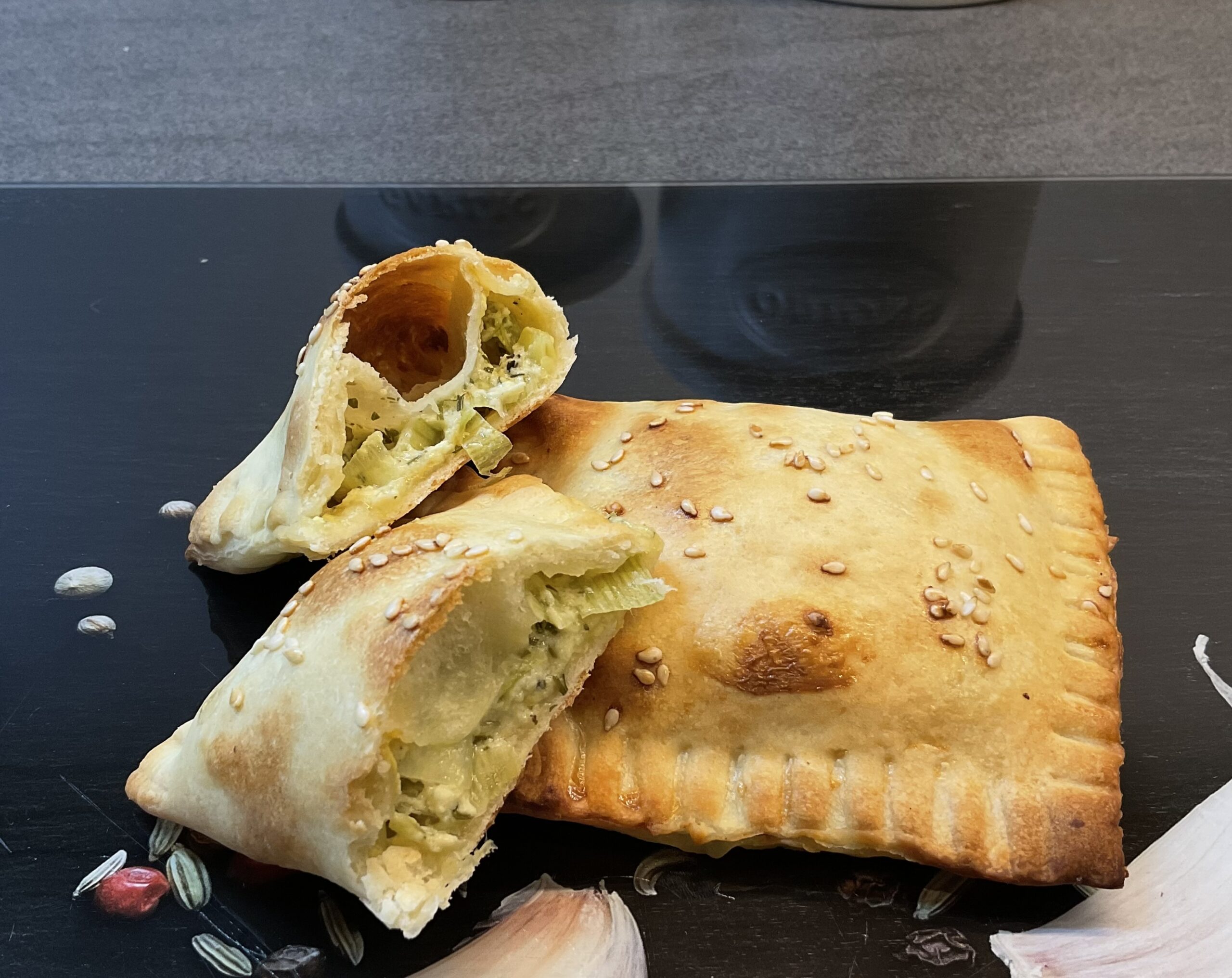 To-go Flammkuchen? Genau das ist es. Eine saftige und geschmacksintensive Füllung, umgeben von knusprig gebackenem Flammkuchenteig. So lecker, dass du die Taschen am liebsten gleich ab Blech essen willst