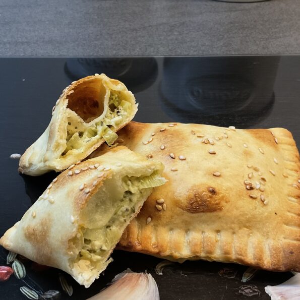 To-go Flammkuchen? Genau das ist es. Eine saftige und geschmacksintensive Füllung, umgeben von knusprig gebackenem Flammkuchenteig. So lecker, dass du die Taschen am liebsten gleich ab Blech essen willst