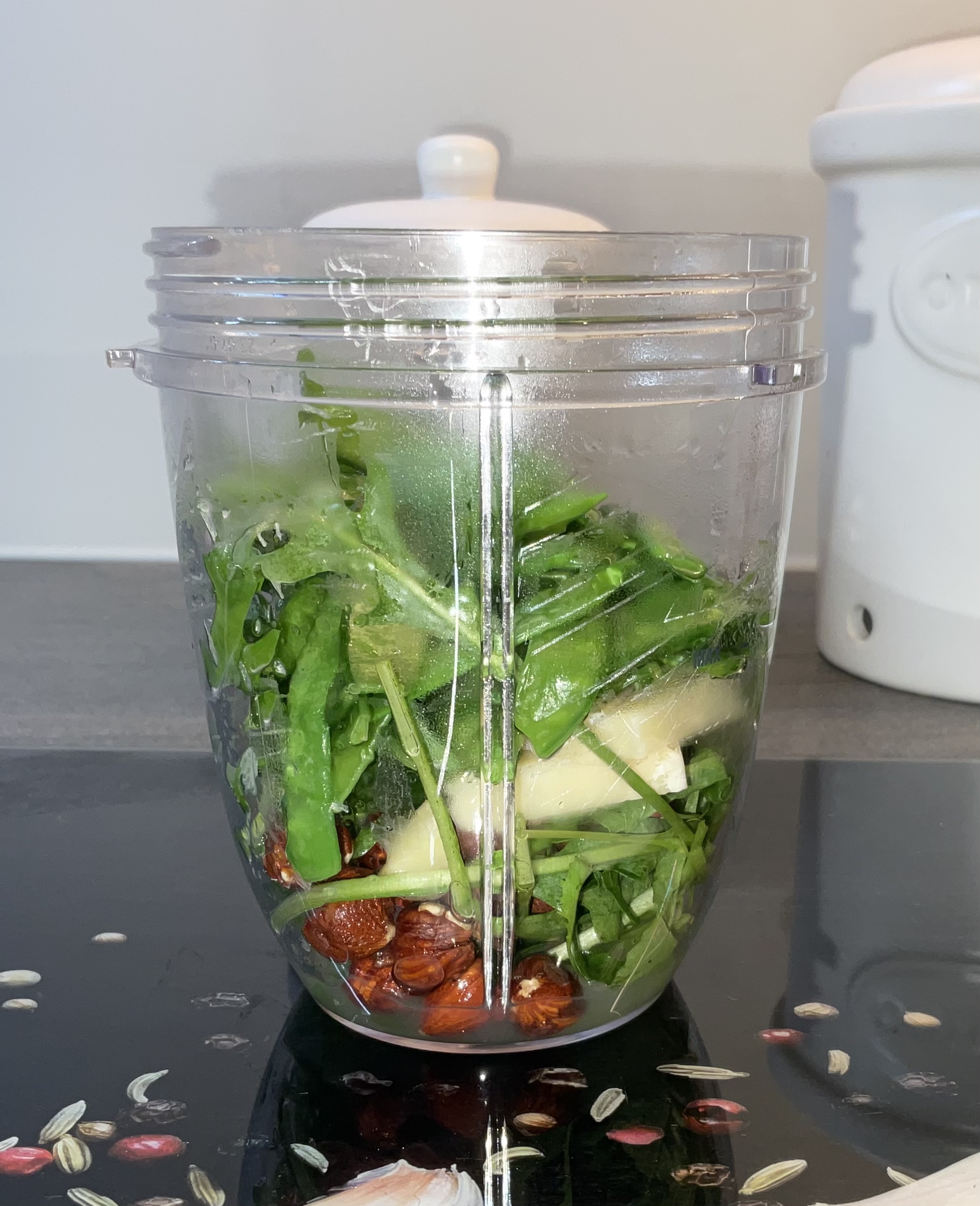 Die Ersatzprodukte Basilikum und Pinienkerne können hier eingesetzt werden.