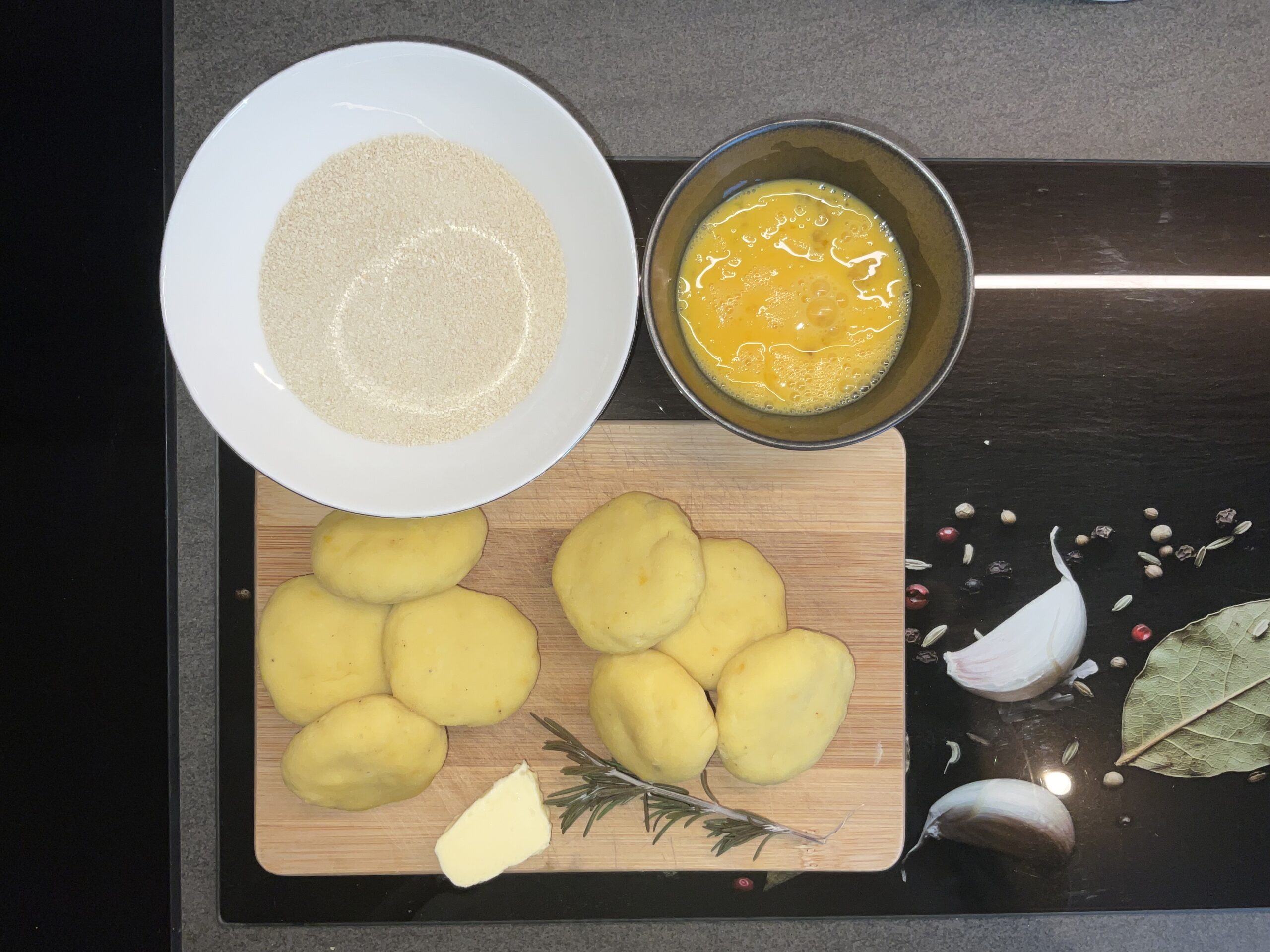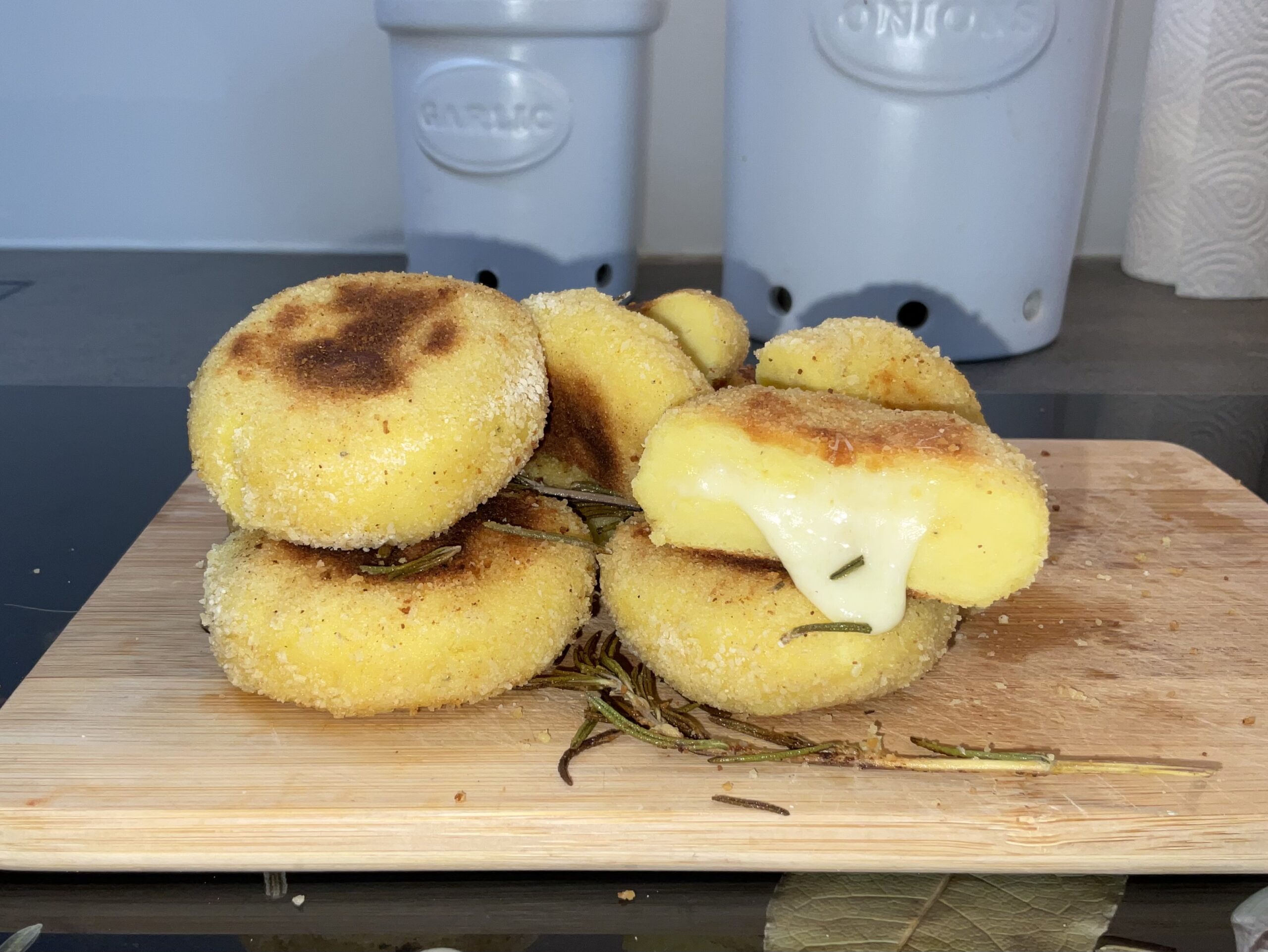 Die Kombination aus Rosmarinbutter, Käse und Kartoffeln hört sich genauso gut an wie sie ist. Die Hülle wird durch das Panieren goldbraun knusprig, während der Käse im Inneren nur leicht schmilzt. Ausprobieren lohnt sich auf jeden Fall.