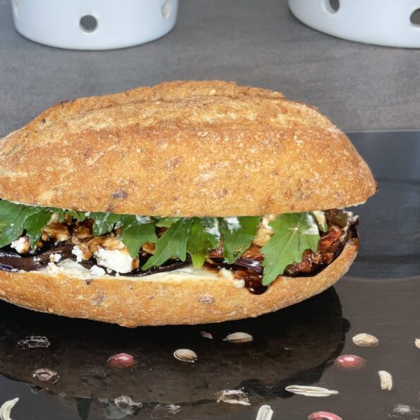 Falls du nach einem saftigen und geschmacksintensiven Sandwich suchst, bist du hier genau richtig. Gefüllt mit Fetakäse, Humus und Grillgemüse, wirst du von der gut aufeinander abgestimmten Kombination überrascht sein