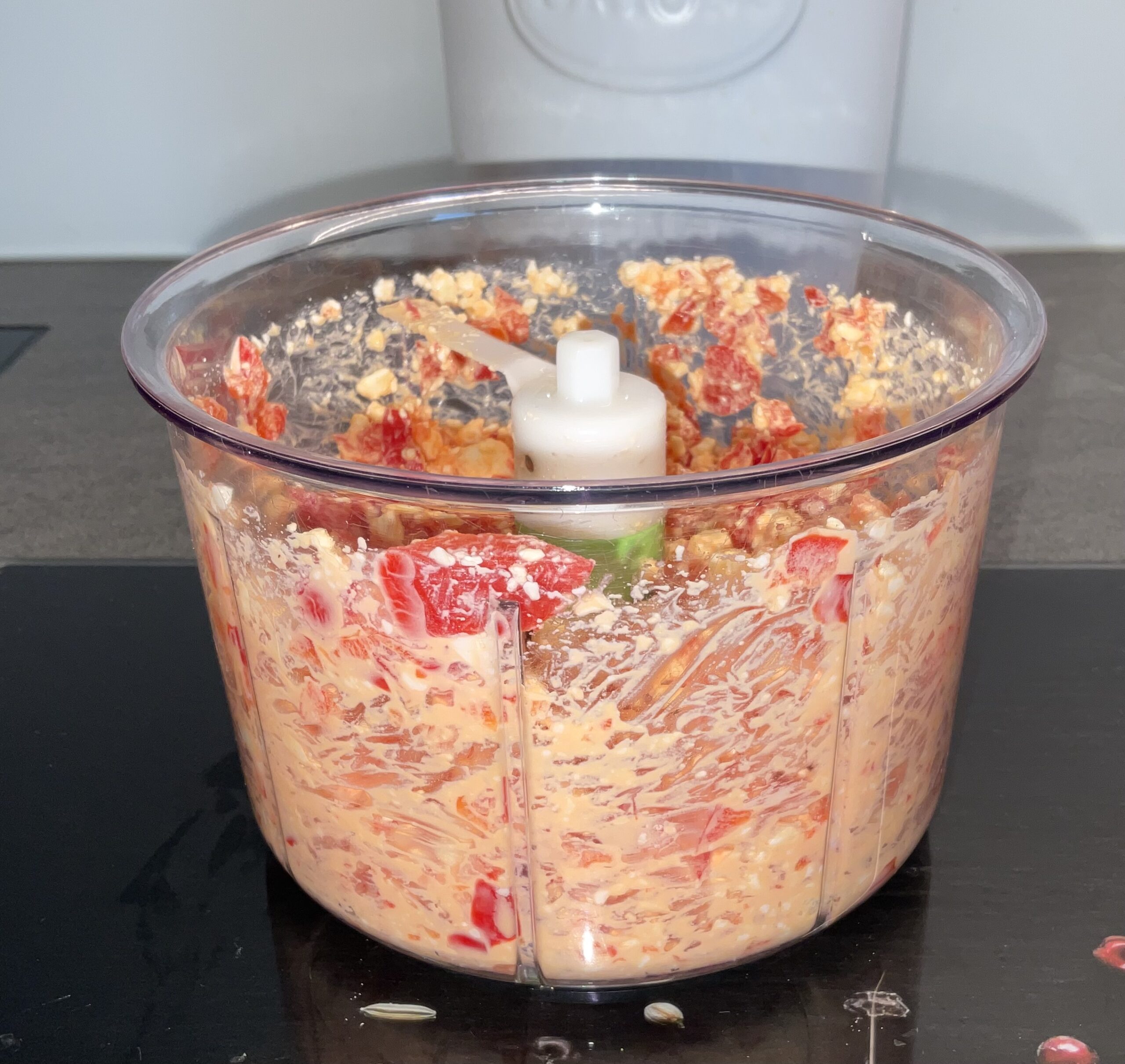 Empfehlenswert ist ein Zwiebelhacker (wie abgebildet) zu benutzen um alles klein zu hacken.
