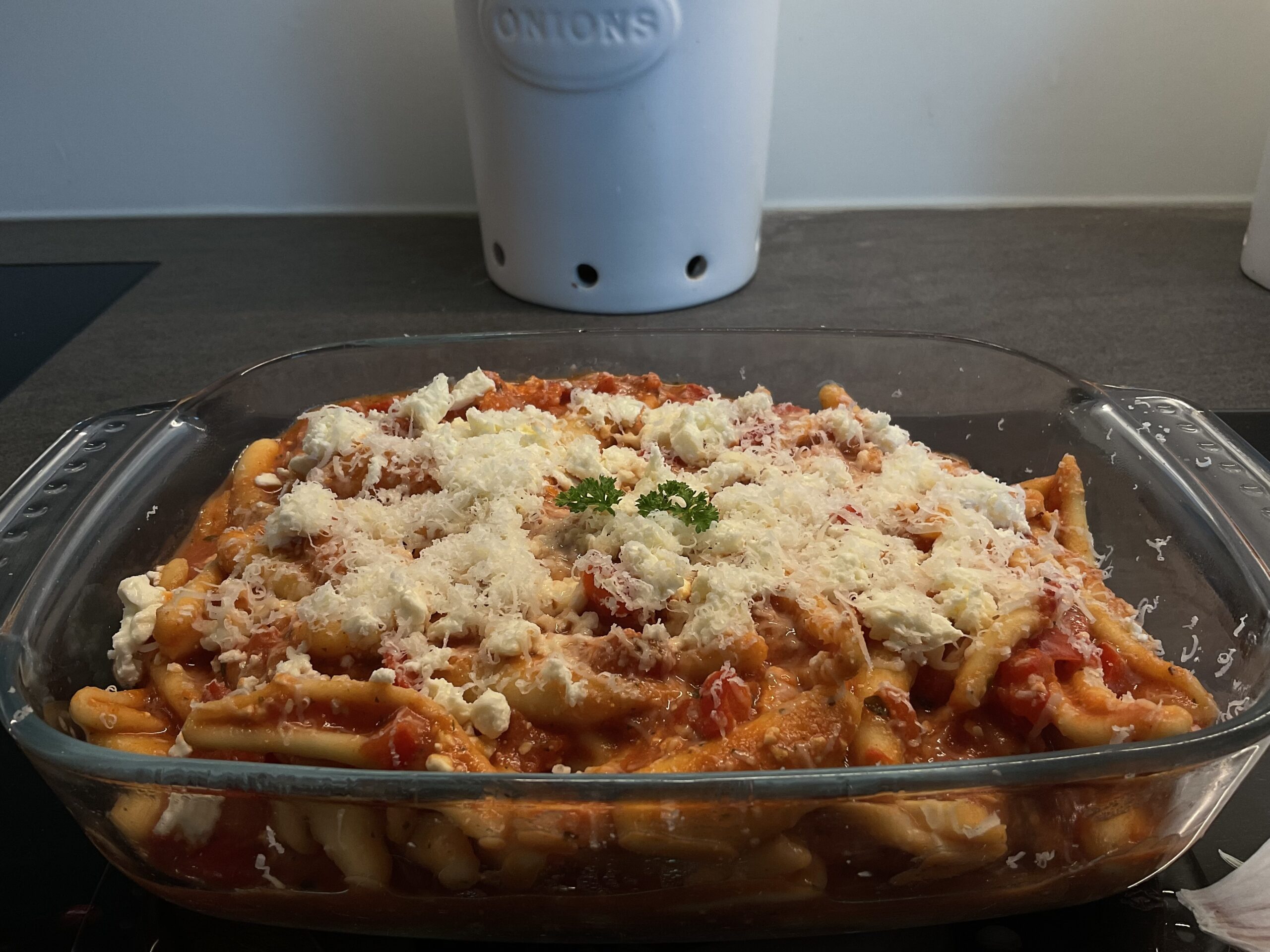 Der Auflauf lässt nichts zu wünschen übrig. Der Käse zieht Fäden und die Teigwaren können sogar vom Vortag als Resten übrig geblieben sein und es schmeckt trotzdem noch hervorragend.
