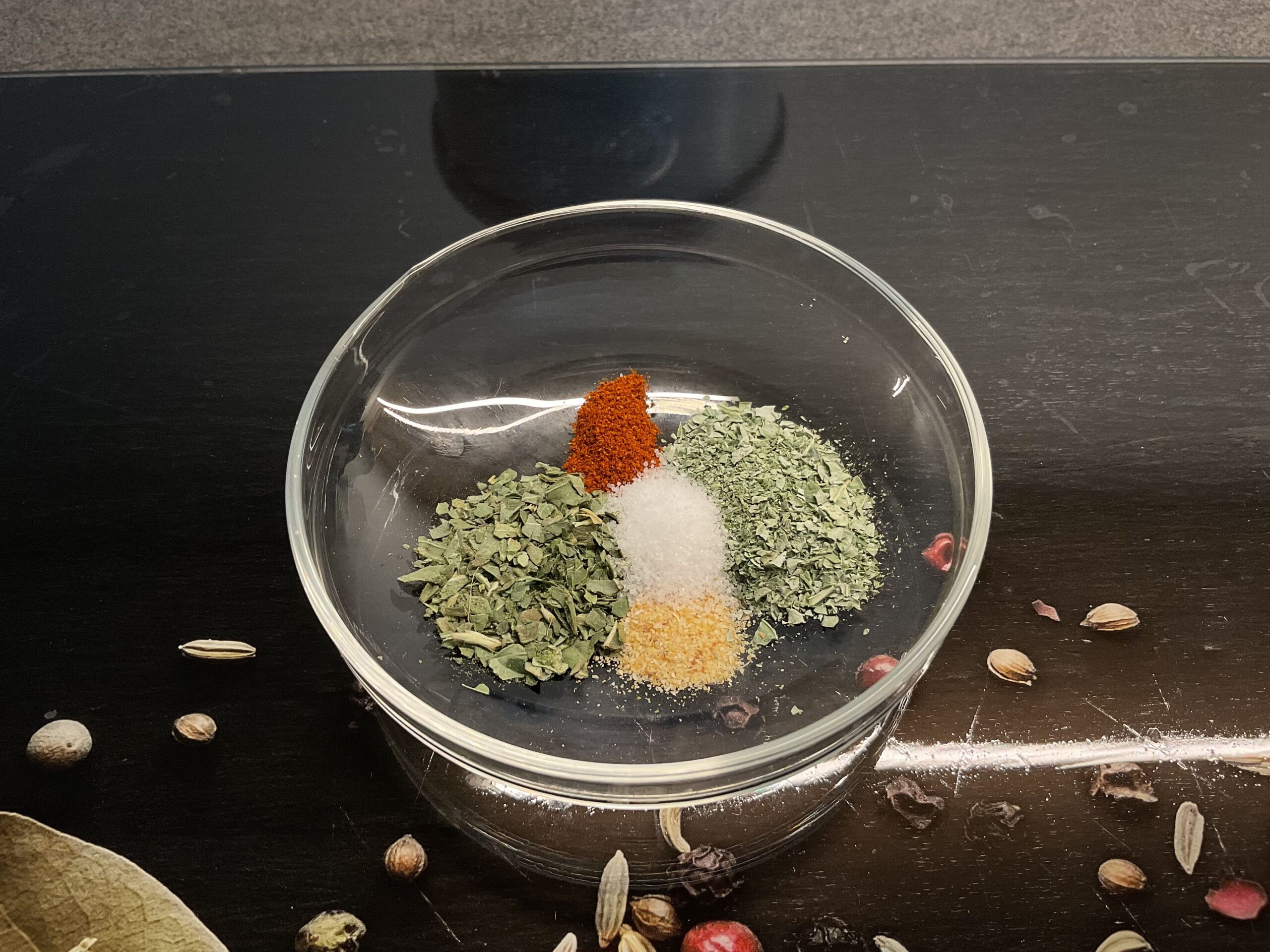Basilikum, Oregano, Paprikapulver, Knoblauchpulver und Salz hinzugeben