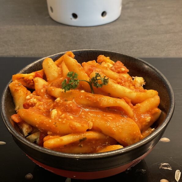 Der Auflauf lässt nichts zu wünschen übrig. Der Käse zieht Fäden und die Teigwaren können sogar vom Vortag als Resten übrig geblieben sein und es schmeckt trotzdem noch hervorragend.